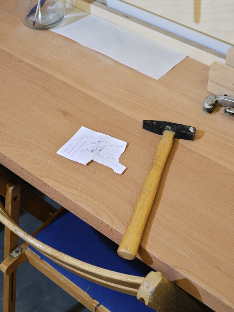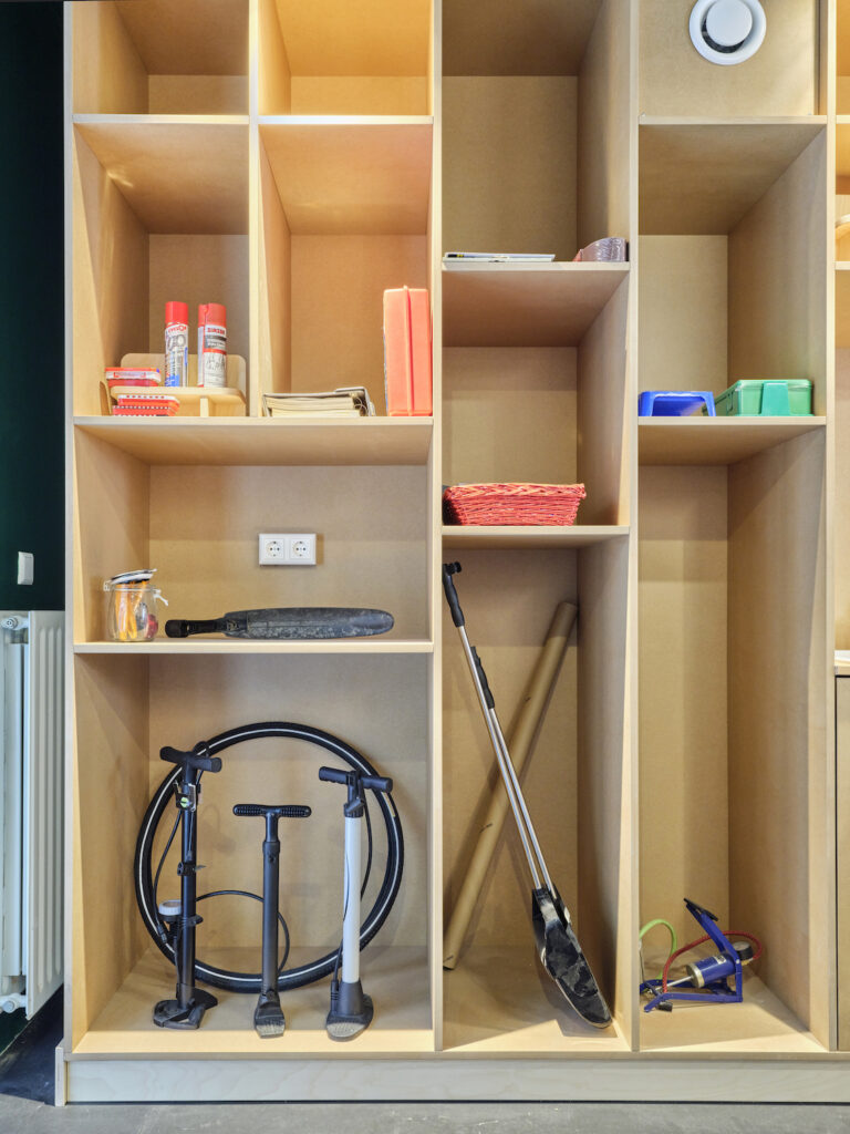Als er een nieuwe bewoner in het gebouw komt wonen, wordt er een wensenlijst gestuurd voor gereedschap. Zo vult de werkplaats zich steeds weer opnieuw aan.