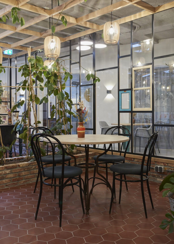 In het hart, ja, daar komt alles samen. Het centrale deel van het huis. Net als in het theater, wonen bezoekers hier voorstellingen bij, komen ze onder het genot van een bakkie troost bij in de Binnentuin of leggen ze een kaartje of spelen een spelletje ‘pool’.